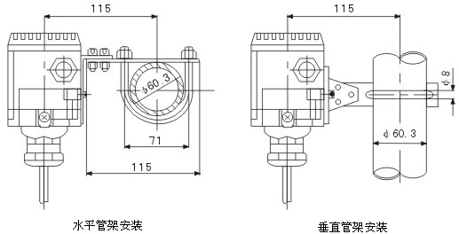 TK3051-LC/LR型缆式和杆式液位变送器具有多种安装固定方式,以适应不同现场情况。当现场不能够提供G2的内螺纹或法兰等工艺设施时,可选择普通形式的液位变送器,它有墙壁安装式、水平管架式和垂直管架式等三种安装方式可选择,使您在现场安装时得心应手。